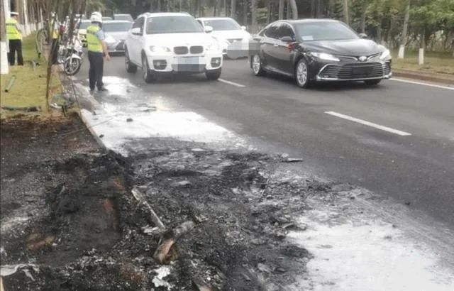 5月29日17时许,海口发生一起汽车自燃事故。从现场图片可以看到,一辆白色汽车停在道路上,猛烈的火势将车辆团团包围,最后车辆被烧得只剩下骨架……