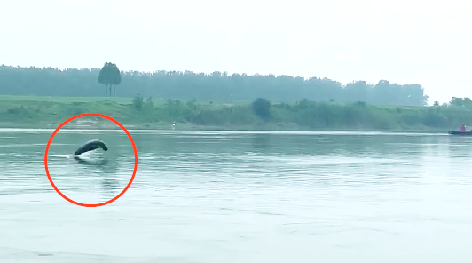 “当时江面很平静,突然传来一阵声响,接着翻滚起一朵巨大的水花,一个大脑袋从水面跃起,喷出一根长长的水柱后又迅速潜入水中,随后又有两个大脑袋跳出来,持续了十多分钟。”一次见到3头江豚,阳林非常激动,赶紧用手机记录下这罕见的一幕,可惜最后只拍到了其中一头。