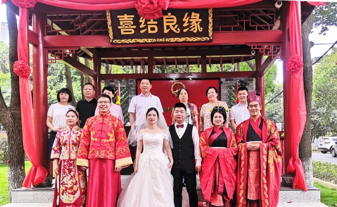 当天,由市民政局主办的湖北省首个婚姻登记室外颁证大厅启用暨婚礼式颁证仪式举行,三对新人分别按中式或西式礼仪举办了婚礼式颁证仪式。