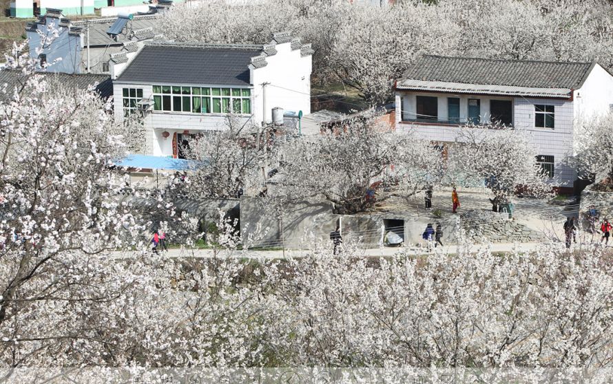 房县城关镇八里村有樱桃树2000多亩,每年3月,樱桃花陆续绽放。站在八里村的高坡上远远望去,漫山遍野、成簇连片的是粉白的世界。