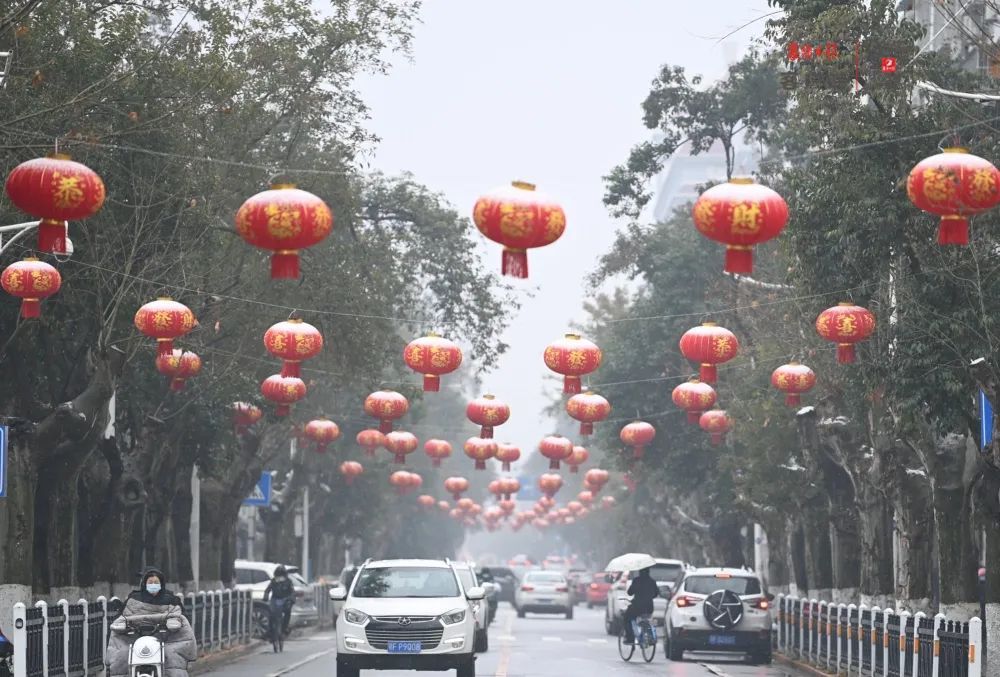 2022年1月28日拍摄的荆州街挂满大红灯笼。全媒体记者谢勇摄