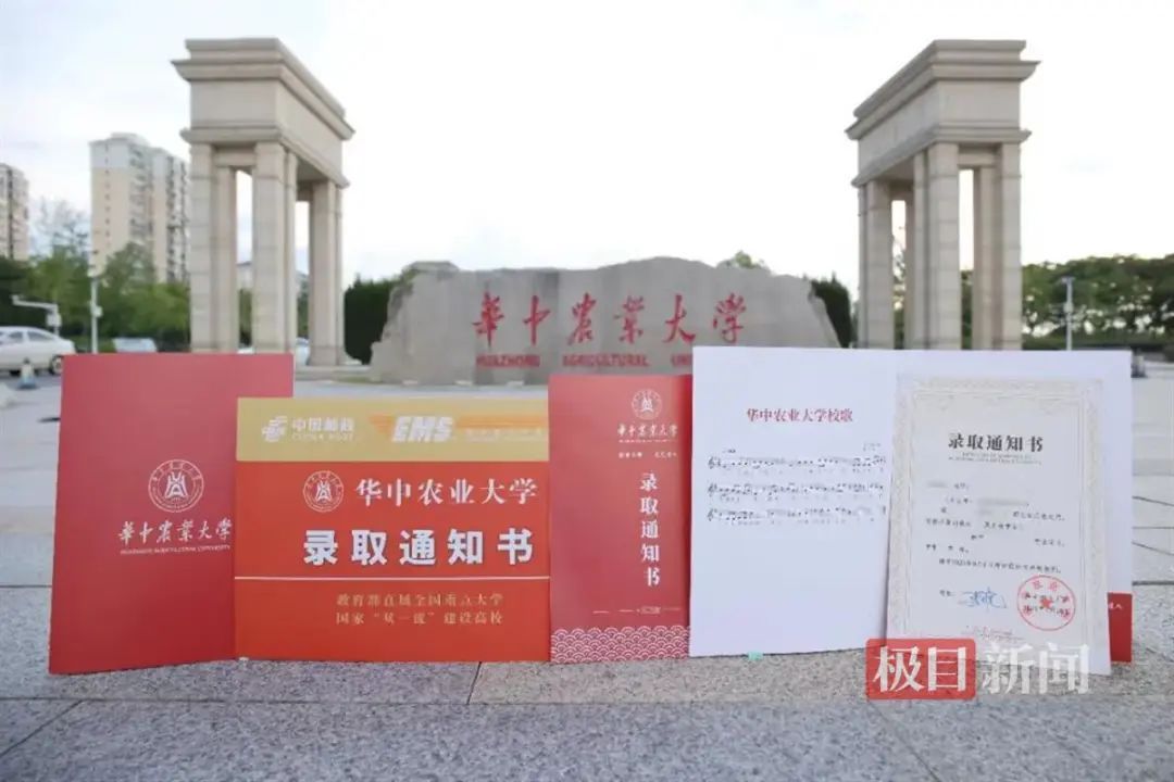 今年的录取通知书沿用传统中国红主色调,象征百廿华农的厚重底蕴。烫金的“勤读力耕 立己达人”校训印于合页右下角,承载着代代华农人的殷切期许和家国情怀。嵌于合页中的录取通知书,四方祥云底纹寓意狮子山下,俊秀云集、人才辈出。合页左侧,华中农大校歌映入眼帘,“勤读力耕肩重任,立己达人图自强。雍雍穆穆,跻跻跄跄。宏农学,扬国光,日新永无疆。”字字句句,彰显着代代华农人以“宏农学,扬国光”为价值追求,坚持与国家发展、民族复兴同频共振的精神底色。