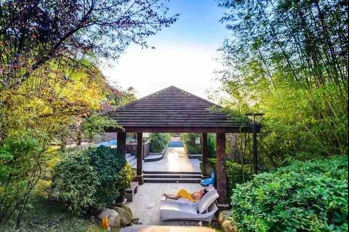 淦河的沿岸修建有几条木头铺就的栈道,掩映在桂树之中,春日树枝抽芽,吐露新绿,生机盎然,若是秋天到此,桂花香气扑了个满怀,风情摇曳。在每一个林荫丛或者是小木屋中,氤氲的温泉水蒸腾而出的雾气,更是别有一番情调。