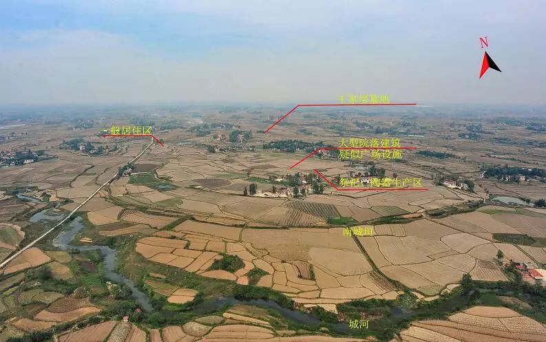 城河遗址鸟瞰图及王家塝位置(南-北)