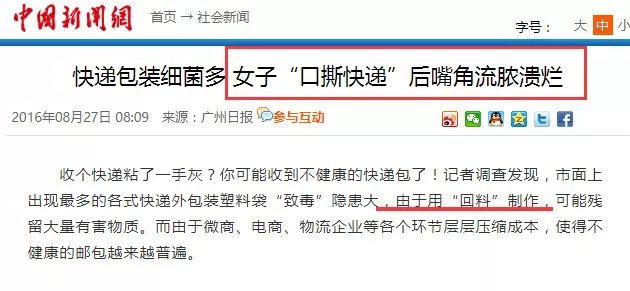 去年,人民网记者暗访快递袋生产发现,这些快递袋,多是用医疗垃圾和化工垃圾做的。