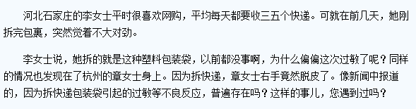 比如河北石家庄的李女士平时很喜欢网购,平均每天都要收三五个快递。