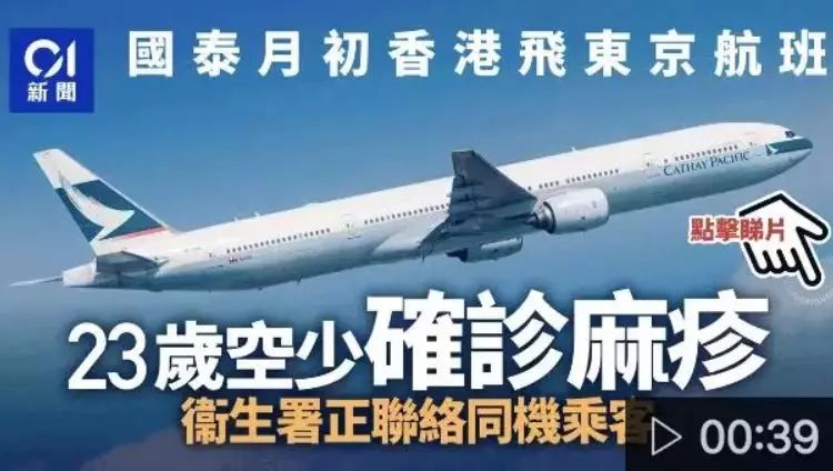 在众多患者中,一名41岁的国泰外籍男机师也被确诊为麻疹患者!他于病毒潜伏期和可传染期间,曾驾驶航班来往日本、泰国、印尼及菲律宾等地,甚至在出疹期间,仍驾驶飞机。