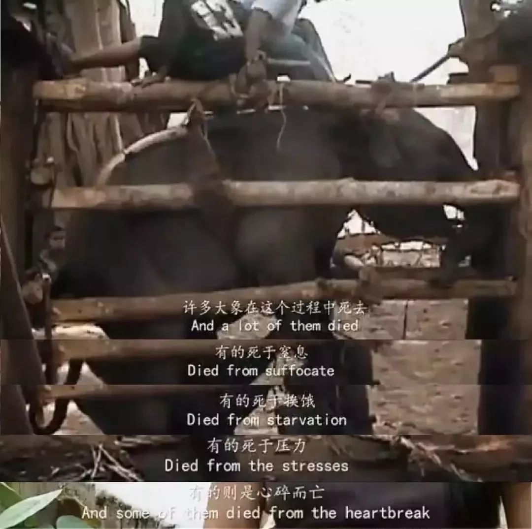 他们还通过隔离、饥饿等方法,摧残它们的意志,许多大象不堪肉体和精神的双重折磨,在训练途中就痛苦死去。
