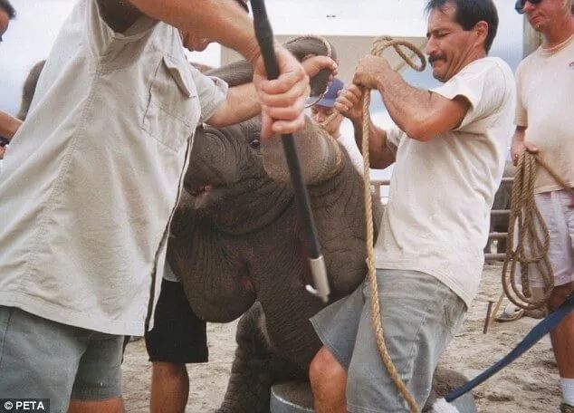 在训练过程中,有的象被打断了腿,有的被虐至眼盲。