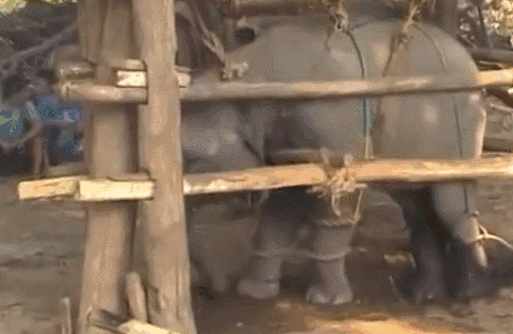 而对于不听话的大象,他们还特制了一种小笼子来惩罚它们,被关入后,无法动弹转身,无法躺下睡觉,甚至连蹲下都是奢侈……