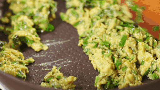 当天,肖先生用清水把香椿洗干净切碎后,做了一盘香椿炒鸡蛋。