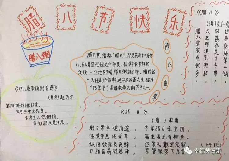 腊八节,俗称“腊八”,汉族传统节日,民间流传着吃“腊八粥”,泡腊八蒜(有的地方是“腊八饭”)的风俗。在河南等地,腊八粥又称“大家饭”,是纪念民族英雄岳飞的一种节日食俗。