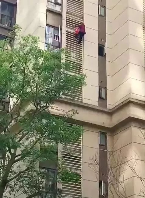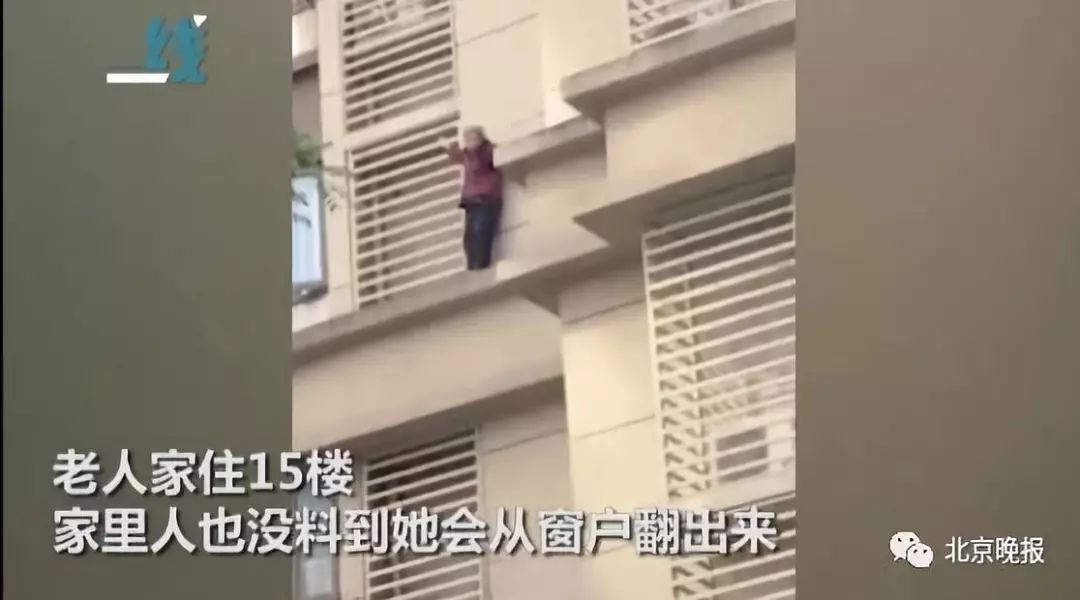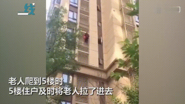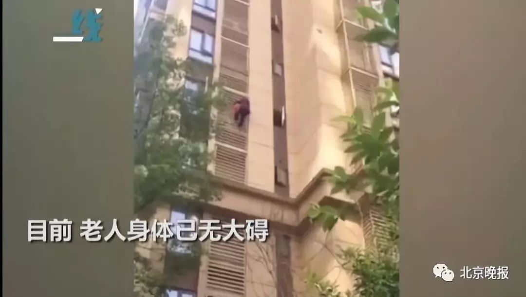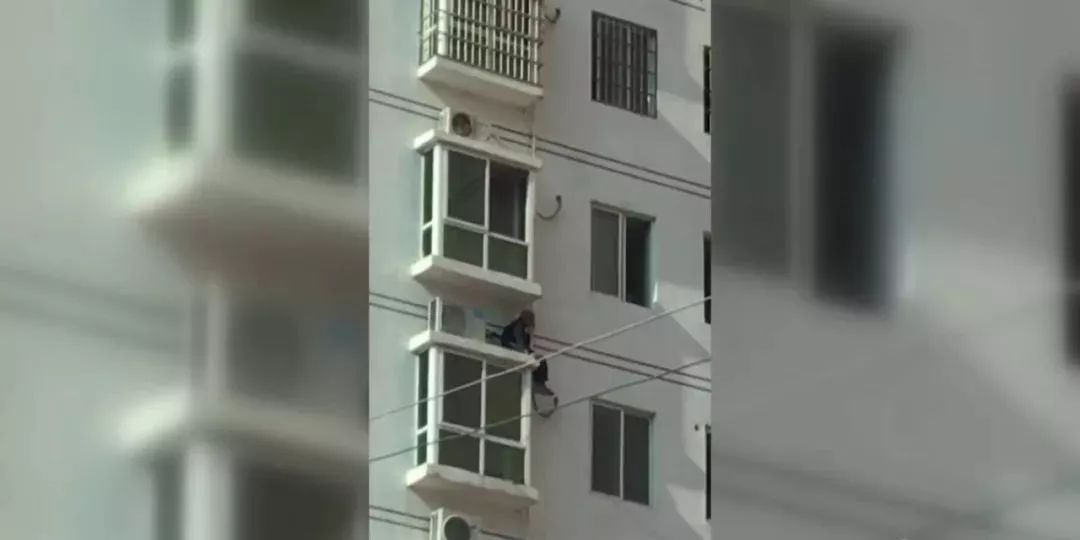 一段“白发老人扒住空调外机栏杆向下攀爬”