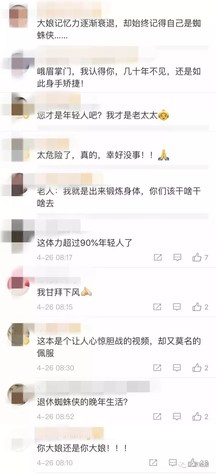 称老人是“晚年版蜘蛛侠”