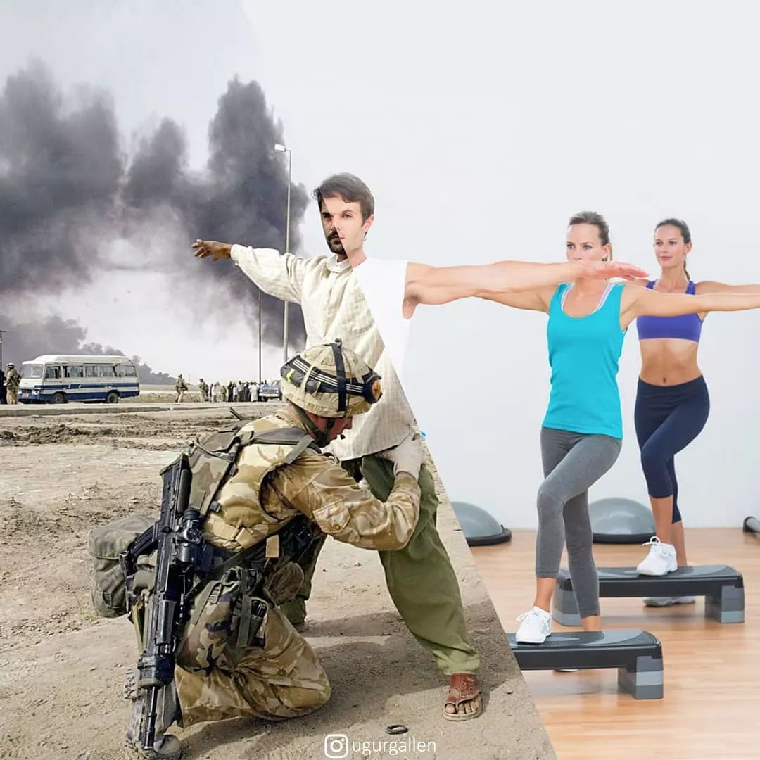 Ugurgallen说,他希望通过拼接,引起人们的思考。他希望所有人都能生活在“家园和平,世界和平“这句话里。