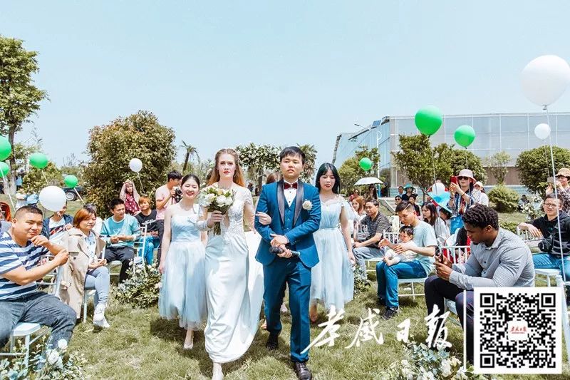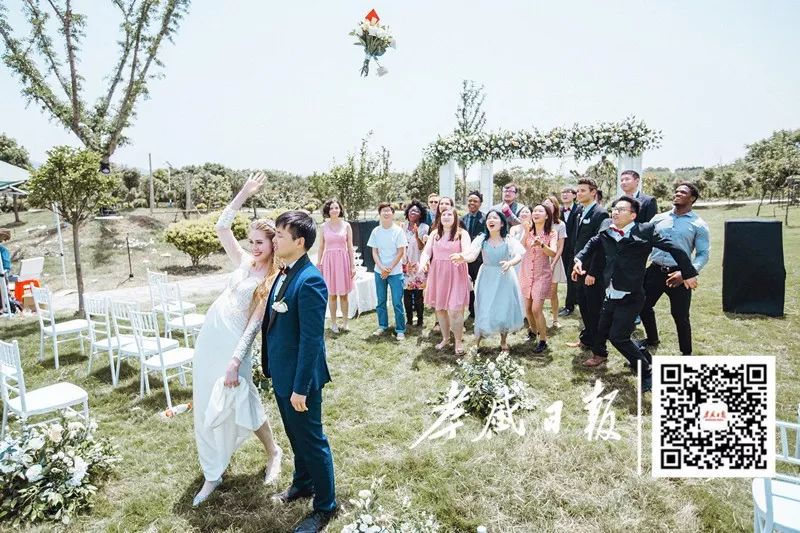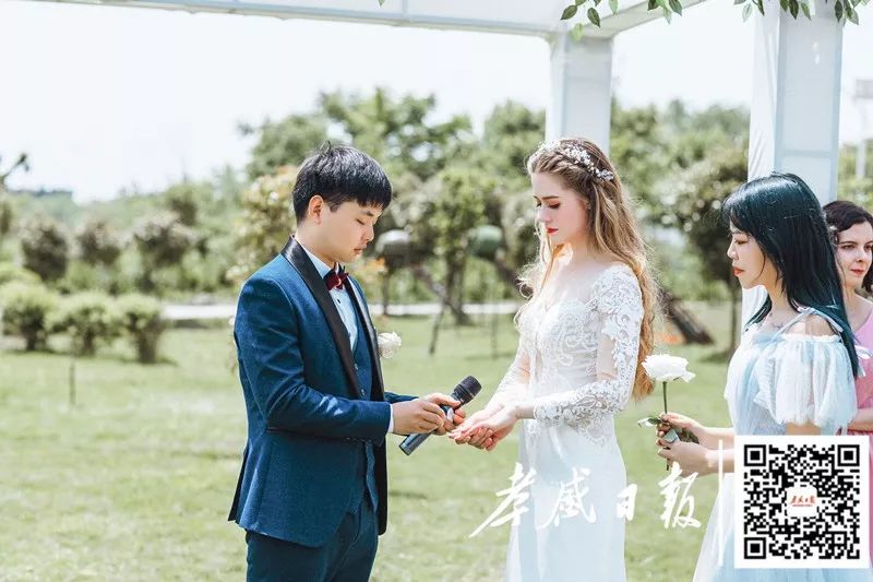 随后,他们又在户外举行了简约又浪漫的西式婚礼,包括交换戒指、喝交杯酒等。
