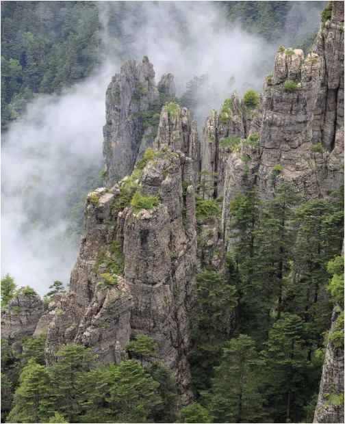 神农架南部,有着保存完好的原始森林风貌。太子垭、金猴岭,冷杉林立,箭竹葱茏。走在林中,满耳鸟语,或圆润、或明丽、或嘹亮、或低回。林间的雾气,来得迅速,了无生息,恍惚行走间,漫山雨雾紧随身后,一路追笼上来,不知不觉,松也肃穆,石也黯淡,影也婆娑。