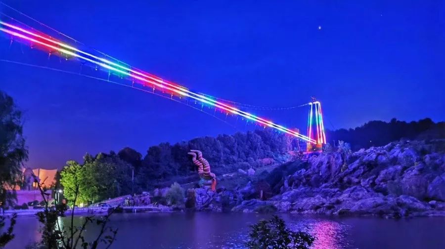凌云渡玻璃桥从白天的惊险刺激到晚上的缤纷炫酷,让游客有了双重全景体验,成为西游记公园的标志性景观和夜晚的核心产品。