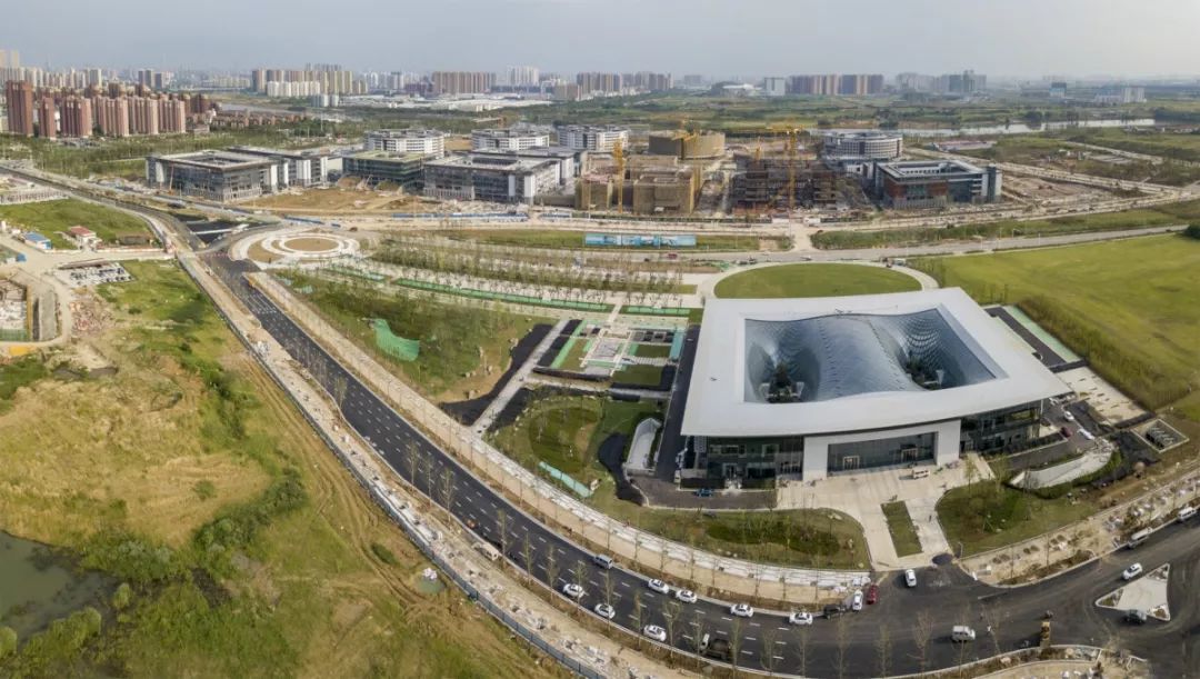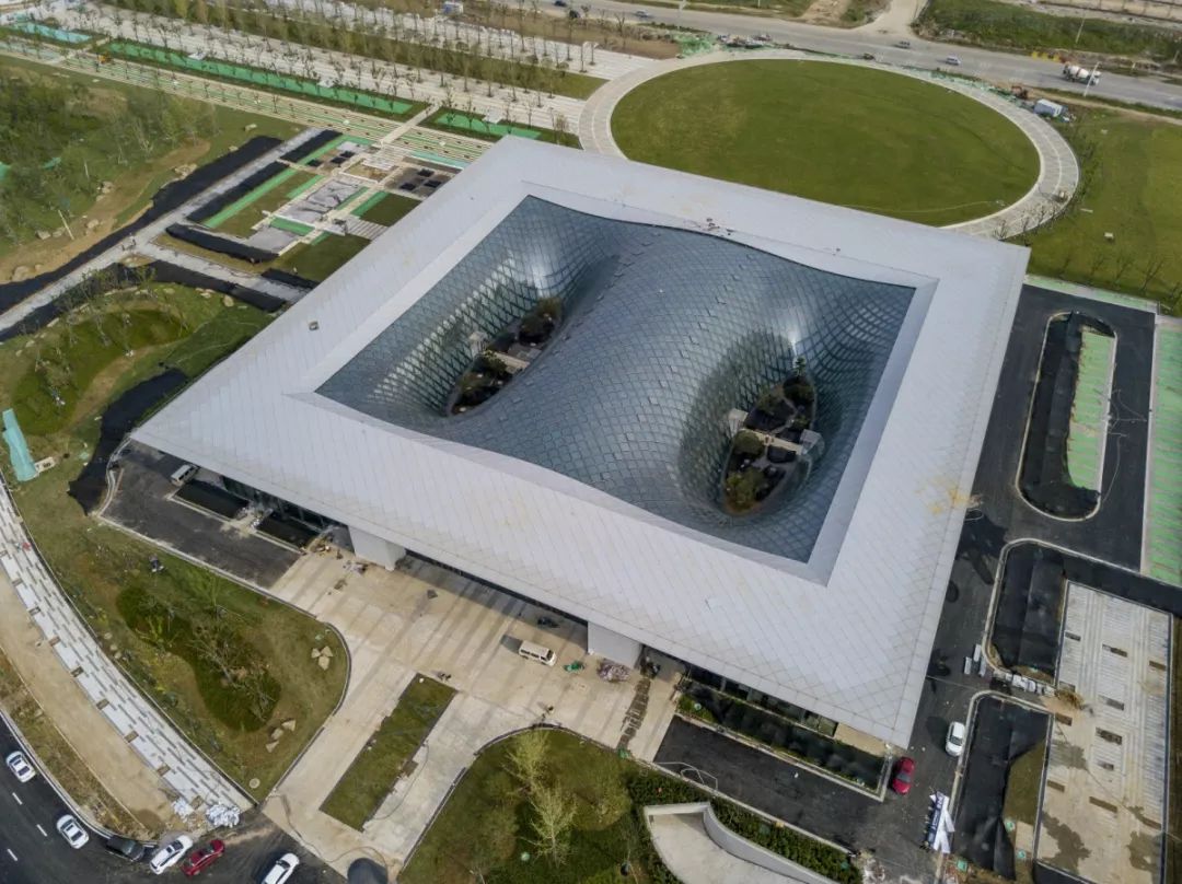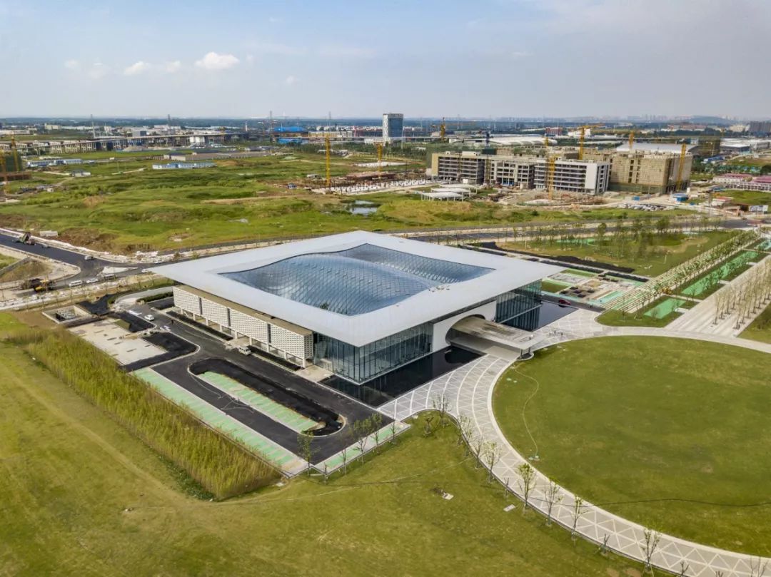 此次活动举办地——国家网安基地展示中心,是国家网安基地2017年8月23日首批开建项目之一,也是首批建成及投入使用的项目。其外形通透规矩,内部施以波浪型网格造型,独特别致。