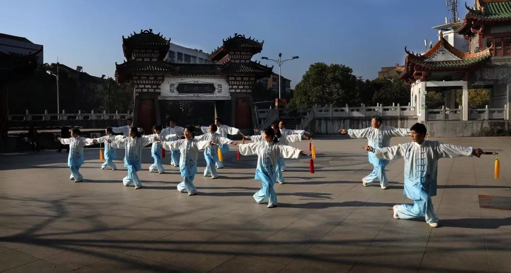 三五成群地在一起打上一手太极