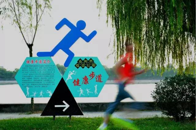 不贪床的年轻人在沮河边晨跑