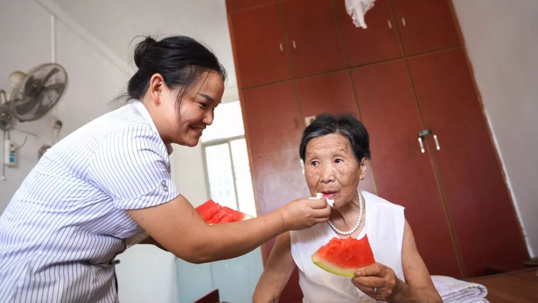 照顾老人吃西瓜