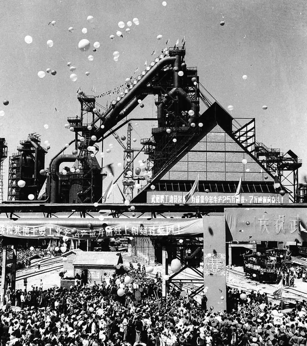 毛泽东主席亲自登上炉台,见证武钢炼出第一炉铁水,