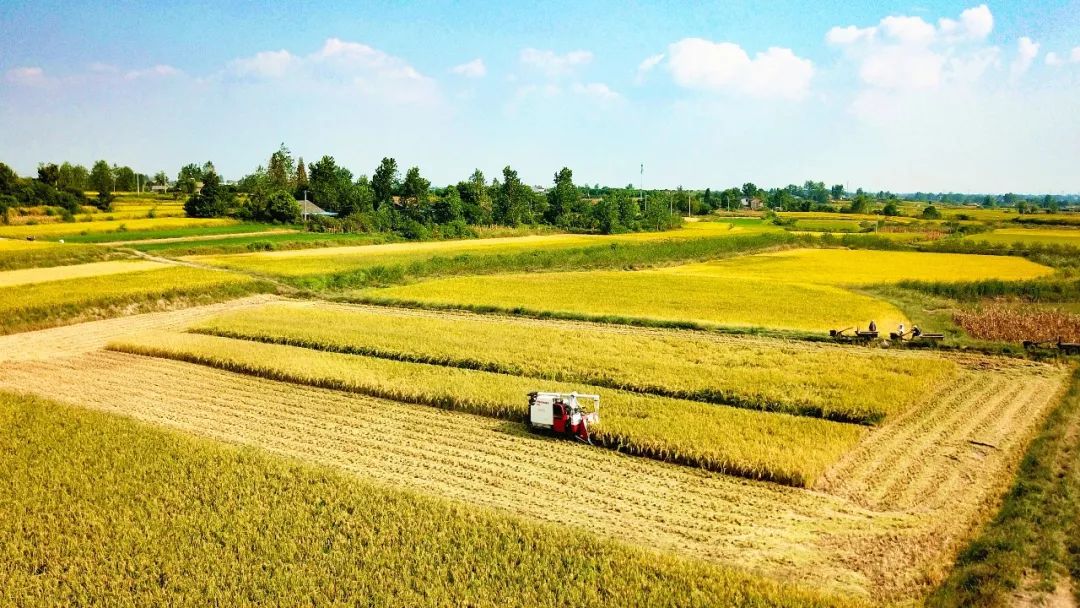 稻香黍熟又秋天,阡陌纵横万亩连。 当前,枝江市29.5万亩中稻已陆续进入收割期,在全市稻作区,到处是一派丰收景象。