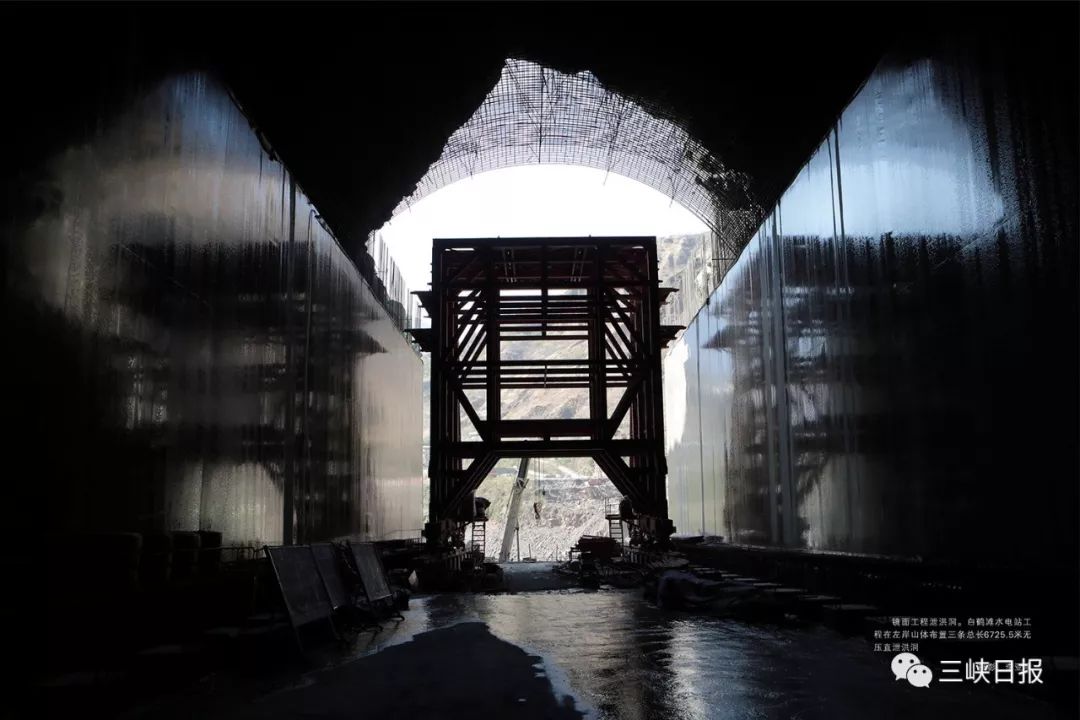 ▲镜面工程泄洪洞。白鹤滩水电站工程在左岸山体布置三条总长6725.5米无压直泄洪洞。摄影:李亚隆