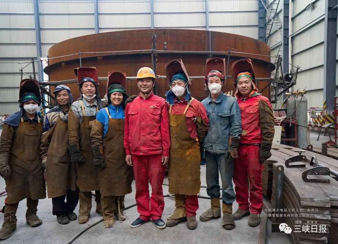 白鹤滩水电站工程工地,右岸引水压力钢管组装车间的焊工班成员。摄影:肖佳法