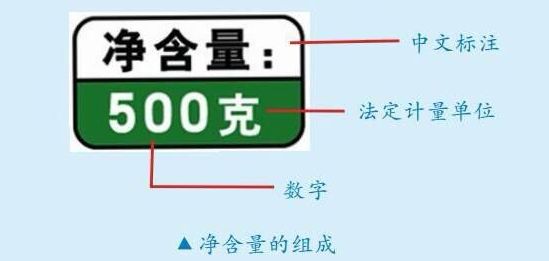 净含量指除去包装容器和其他包装材料后装物的实际质量。定量商品外包装上应在显著位置正确、清晰地标注净含量。同时,多件包装商品应当标注单件定量包装商品的净含量和总件数,或者标注总净含量和总件数,配套商品应当标注各种不同种类商品净含量。净含量的标注由“净含量”(中文)、数字和法定计量单位(或者用中文表示的计数单位)三部分组成。