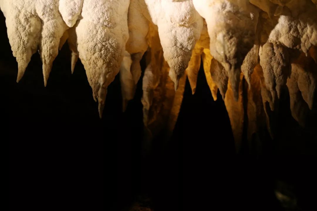 它们中的大部分,下面有鹅管,且鹅管还在滴水,说明它还在生长、变化之中,因此说明这个洞穴非常有活力。