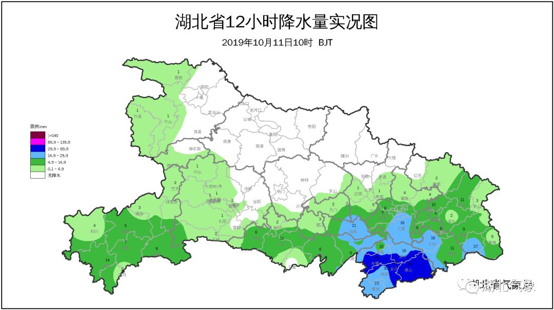 10日,由于弱冷空气造访,全省大部地区都有雨水打扰,在天气条件和气象部门人工增雨作业的共同影响下,干旱已久的鄂东南终于迎来了降雨,中西部大部分地区高温在17—23℃,东部地区则在25—32℃。