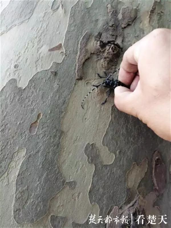 “天牛过去只喜欢出没在法桐和柳树上。”城管园丁介绍,如今发展到樱花和公园的碧桃树、红枫、石楠等十几种树上。