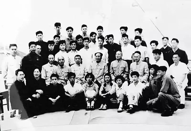 毛泽东品尝豆皮后与豆皮大王高金安等合影