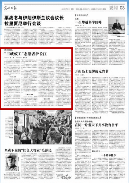 李年邦告诉记者:“取名‘三峡蚁工’,就是要像蚂蚁一样一点点清理母亲河。一个蚂蚁力量虽小,但抱团起来却有无穷的力量。”