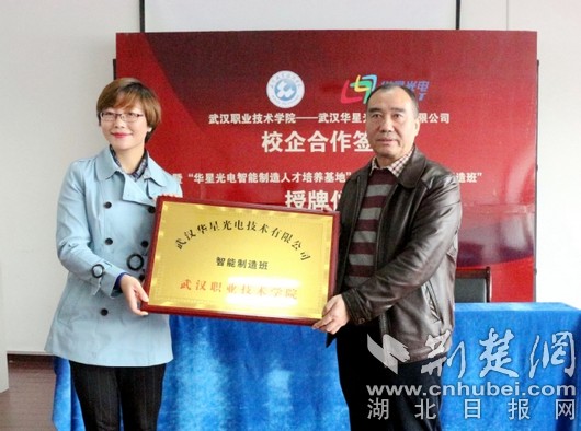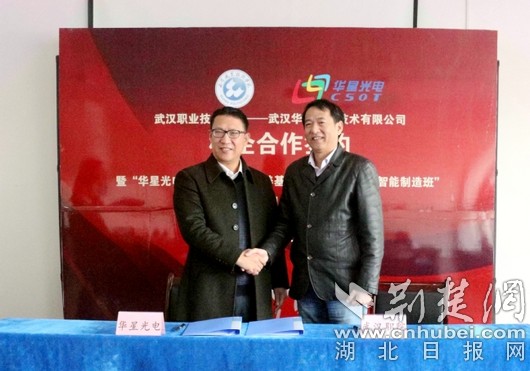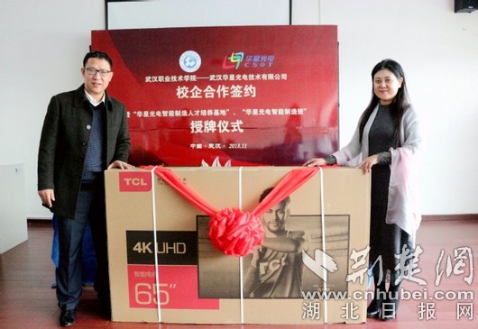 荆楚网消息(通讯员曾华琴、袁昌宁)11月20日,武汉职业技术学院与武汉华星光电技术有限公司校企合作签约暨“华星光电智能制造人才培养基地”“华星光电智能制造班”授牌仪式在机电工程学院举行,校企双方洽谈了智能制造专业学科建设方向,探讨了共建智能制造学院的可行性和建设愿景,签署了校企合作框架协议,企业还向学校赠送了集团产品。