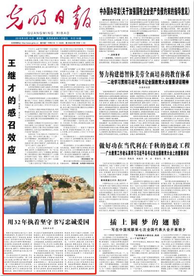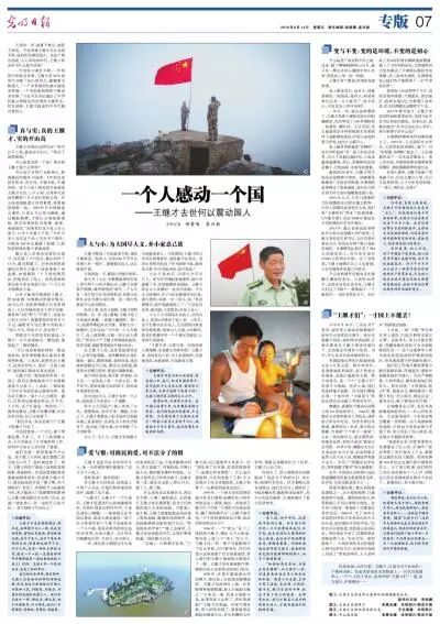 《光明日报》头版+专版报道王继才的感人事迹。(↑点击图片可查看原文)