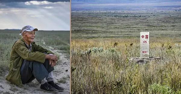 左图为魏德友在巡边间隙休息;右图为边境界碑(资料照片)