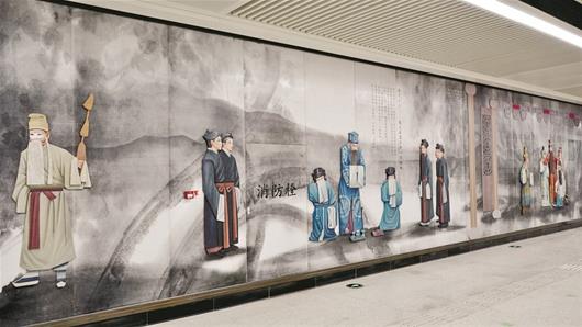 图为纸坊线谭鑫培公园站带有京剧特色的艺术墙