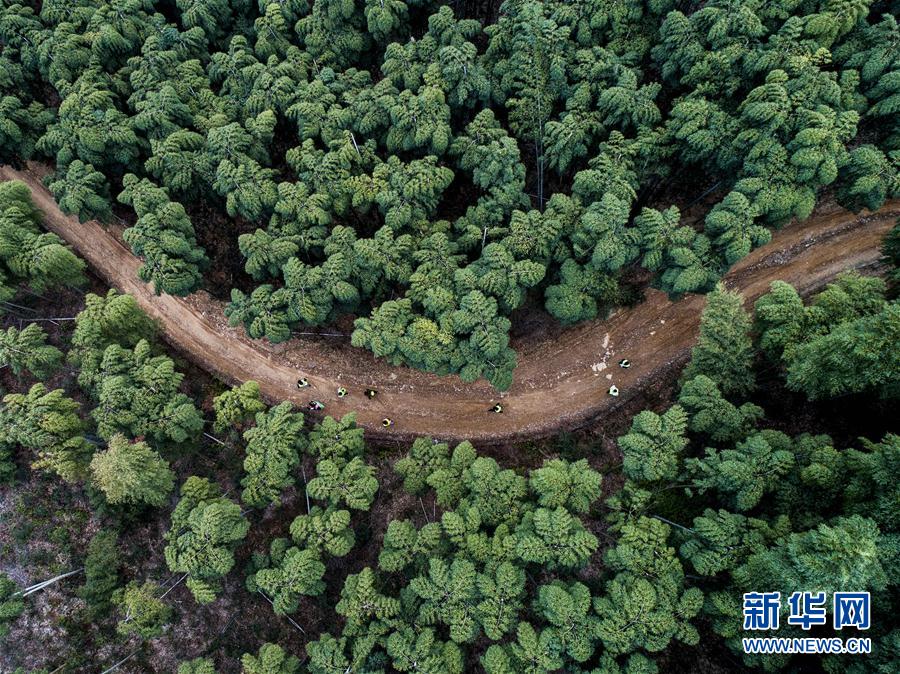2018年12月30日,参赛选手在安吉县山川乡竹林间的赛道上奔跑(无人机拍摄)。 当日,浙江省安吉县山川乡举办“迎新年”溯溪越野挑战赛,比赛设溯溪越野竞赛线路和群众线路两条线路,竞赛线路19.5公里,群众线路9.8公里,赛道穿越竹林、山地、乡村、溪流等安吉乡村特色地貌,吸引近800名运动员和户外运动爱好者参加。 新华社记者徐昱摄