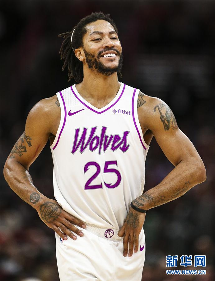 2018年12月26日,森林狼队球员罗斯在比赛中庆祝。 当日,在2018-2019赛季NBA常规赛中,明尼苏达森林狼队客场以119比94战胜芝加哥公牛队。 新华社发(乔尔·莱纳摄)