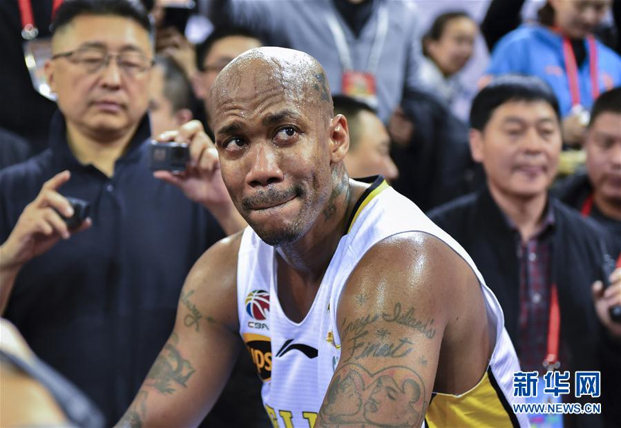 2018年2月11日,马布里在退役仪式上泪流满面。 当日,在2017-2018赛季中国男子篮球职业联赛(CBA)第38轮北京农商银行主场对阵江苏肯帝亚的比赛后,北京农商银行队为马布里举行了退役仪式。 新华社记者张晨霖摄