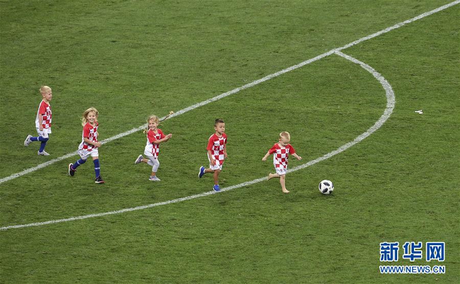 2018年7月11日,克罗地亚队球员的孩子在比赛后进入球场内。 当日,在莫斯科进行的2018俄罗斯世界杯足球赛半决赛中,克罗地亚队与英格兰队在90分钟内战成1比1平。最终,克罗地亚队经过加时赛以2比1战胜英格兰队,历史上首次晋级世界杯决赛。 新华社记者王毓国摄