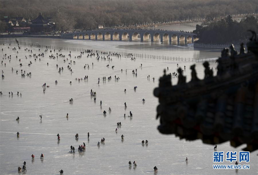 2018年12月30日,游客在颐和园冰场体验各种冰上娱乐项目。 当日,北京颐和园昆明湖70万平方米的冰场正式开放,颐和园冰场分为昆明湖主湖区、苏州街湖区与西堤冰滑梯三个区域,设立冰车、冰上自行车、冰滑梯、冰鞋速滑等10个冰上娱乐项目。 新华社记者陈晔华摄