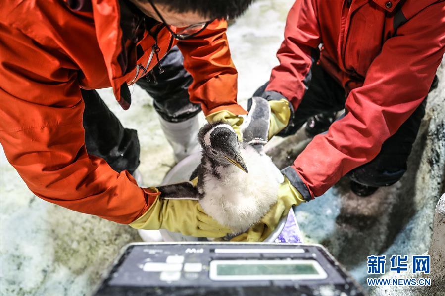 - 1月9日,驯养员给白眉企鹅宝宝称重。 新华社记者 潘昱龙 摄