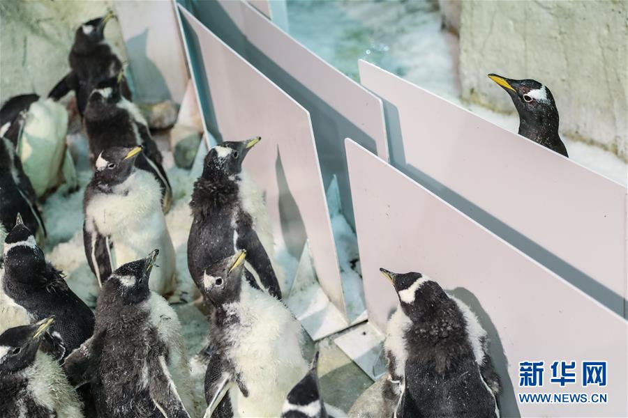 - 1月9日,成年白眉企鹅(右)在隔离板外关注自己的宝宝。 新华社记者 潘昱龙 摄