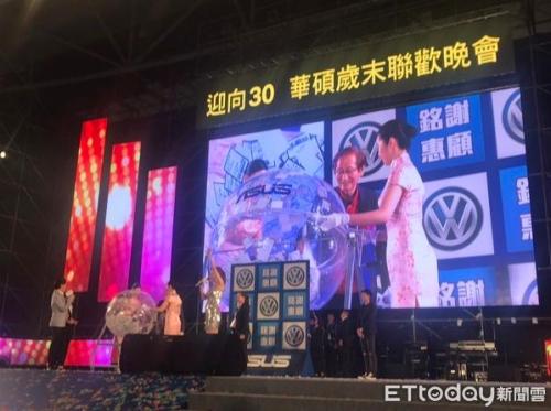 1月13日,华硕尾牙送出8台汽车,最大奖是价值超过百万的福斯Touran休旅车。(图片来源:台湾“东森新闻云”记者 姚惠茹 摄)