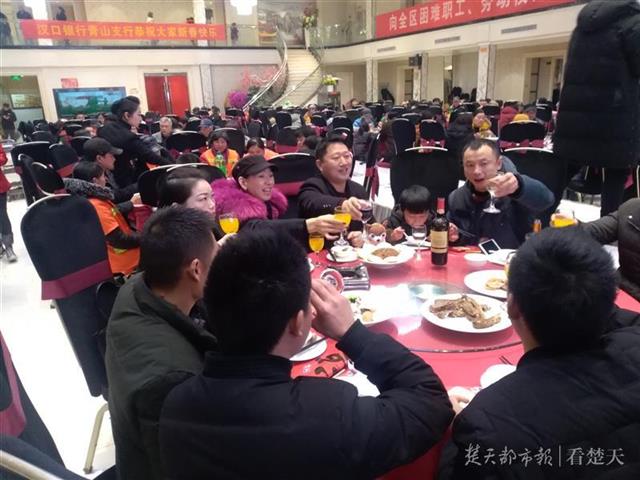 当天,来自青山区的131名困难职工、45名环卫工保洁员和11名外地农民工、10名劳模、40名园林工人,也参加了团年宴。
