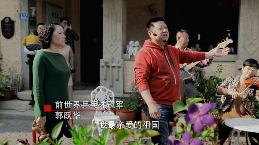 这天下午,家庭音乐会有了特别来宾!前世界乒乓球冠军郭跃华、红遍厦门的75岁网红奶奶黄炎贞和乐队成员深情歌唱,演绎对祖国的热爱。
